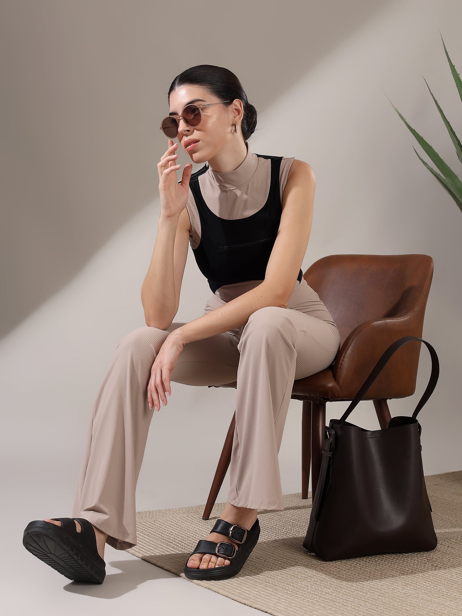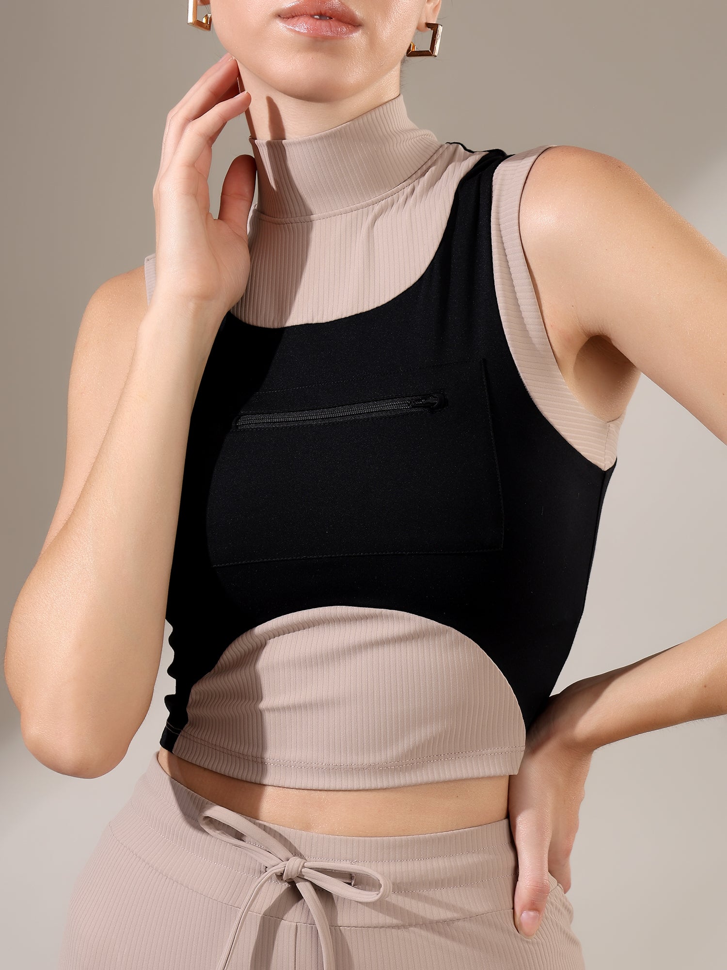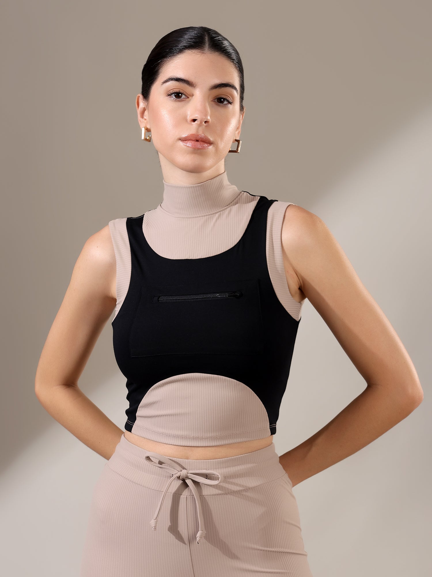 The Fitkin Beige Colorblock Ribbed Top blends bold style with everyday comfort, featuring ribbed texture and breathable stretch for all-day ease.