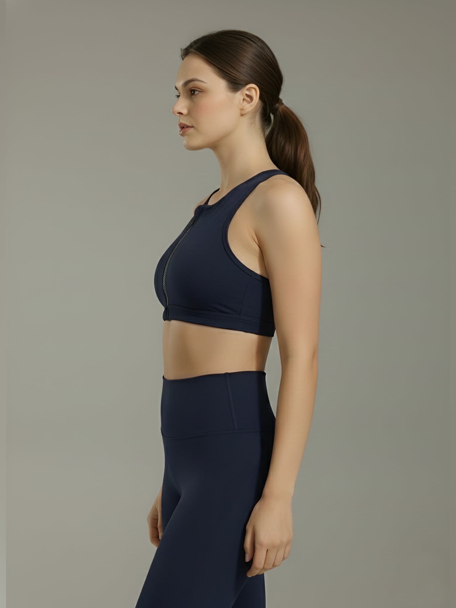 Women Navy High Neck Front Zip Sports Bra – High Support Activewear Bra