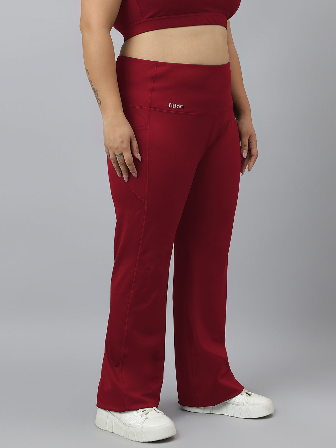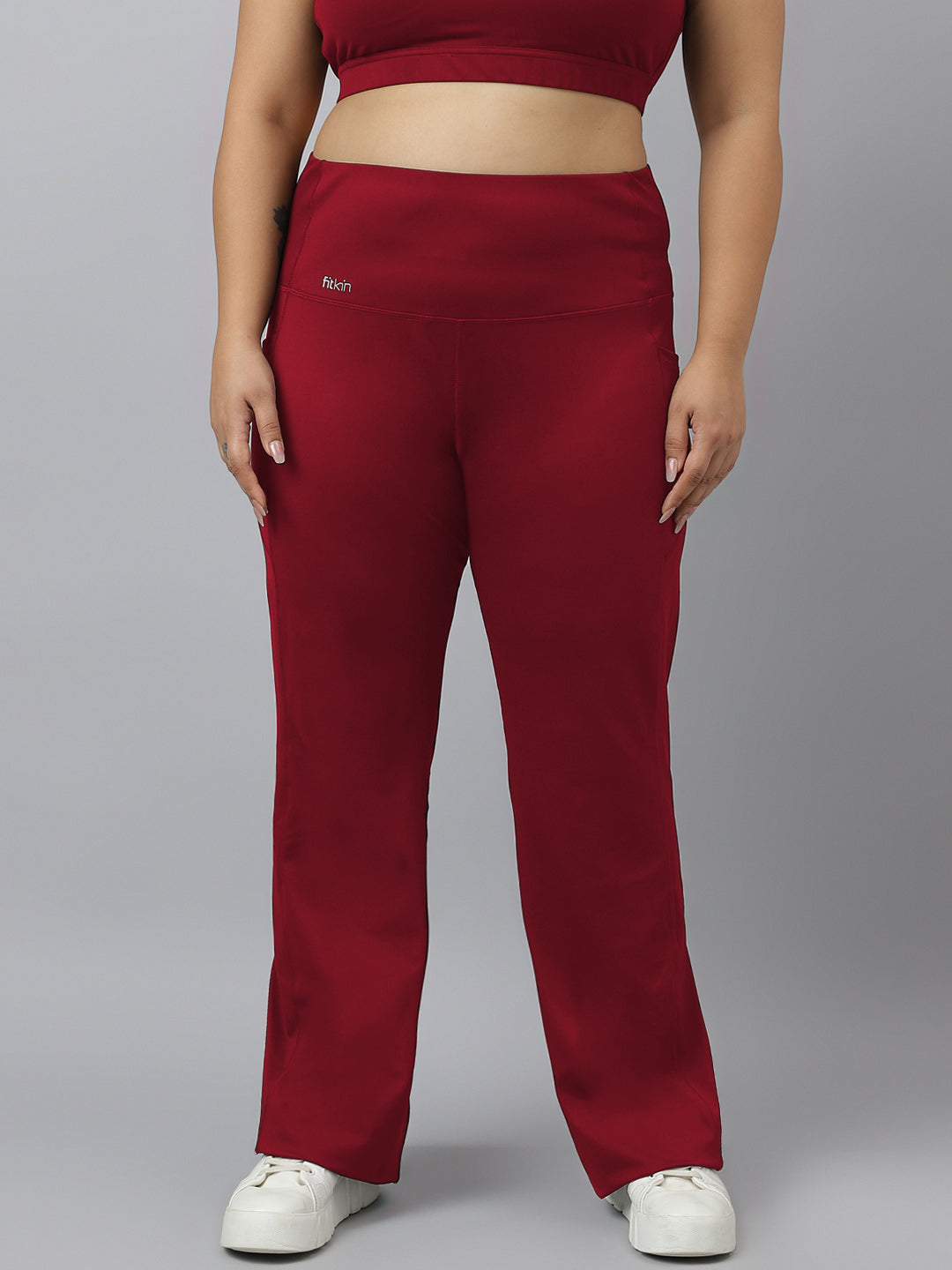Fitkin Plus Size Active Track Gym Bootcut Flare Maroon Pants
