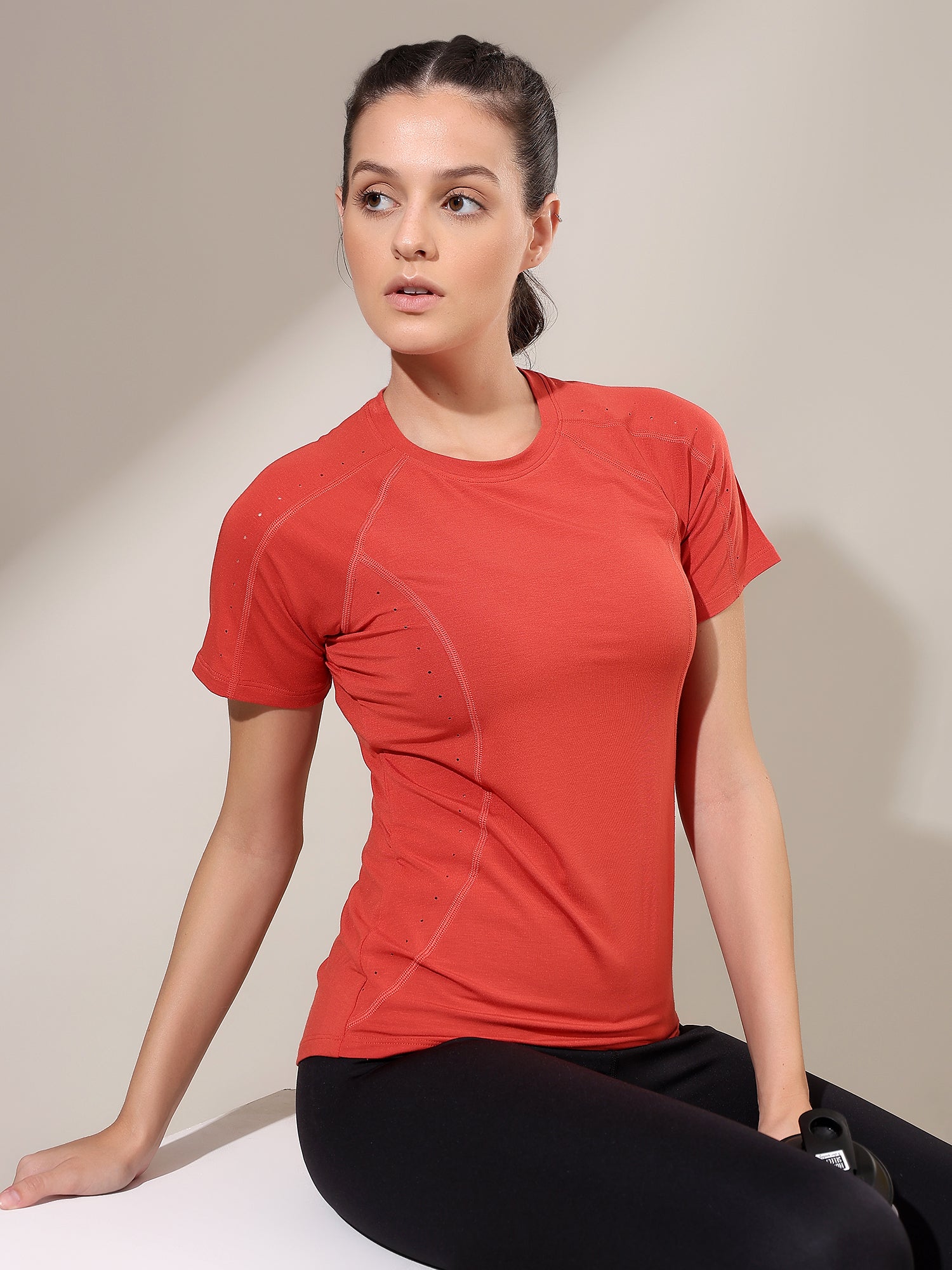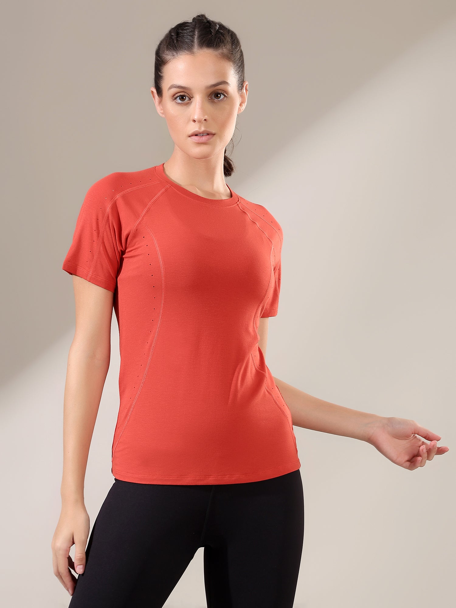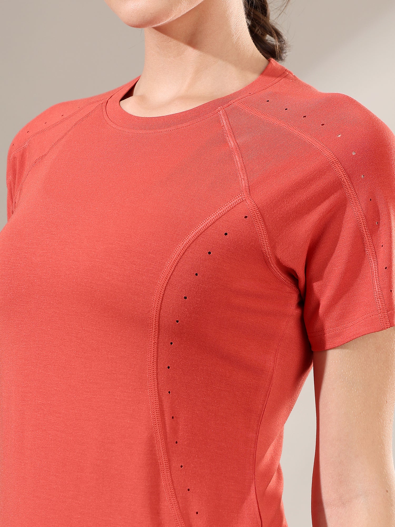 Designed to move with you, the Fitkin Rust Laser Cut T-Shirt blends function and flair. Lightweight, breathable, and elevated with laser-cut details—this tee levels up your everyday activewear consciously.