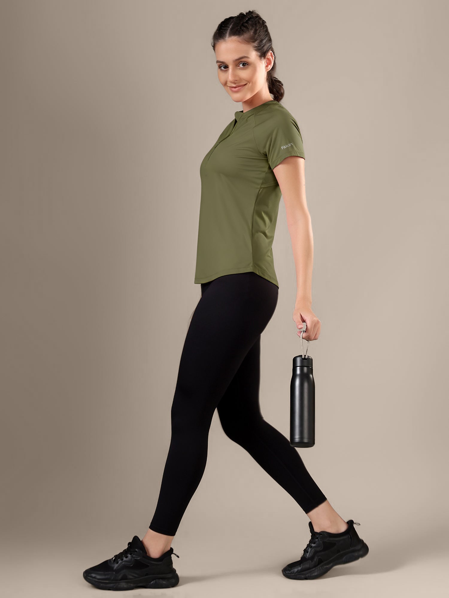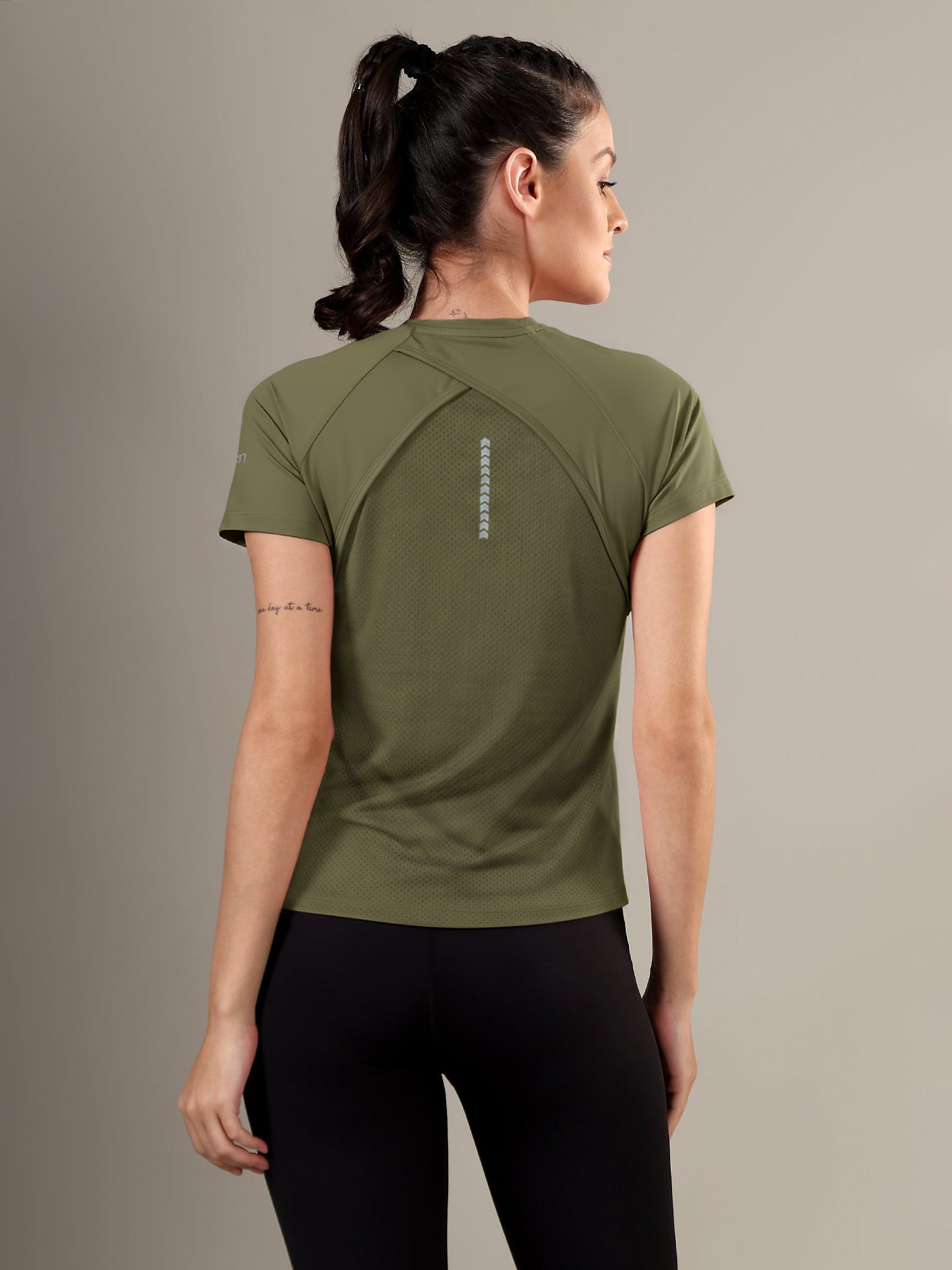 Stay cool and comfortable during intense workouts with this women’s training t-shirt featuring a breathable mesh back panel for enhanced airflow. Made from lightweight stretch performance fabric, it offers flexibility, moisture control, and all-day comfort for workouts and athleisure wear.
