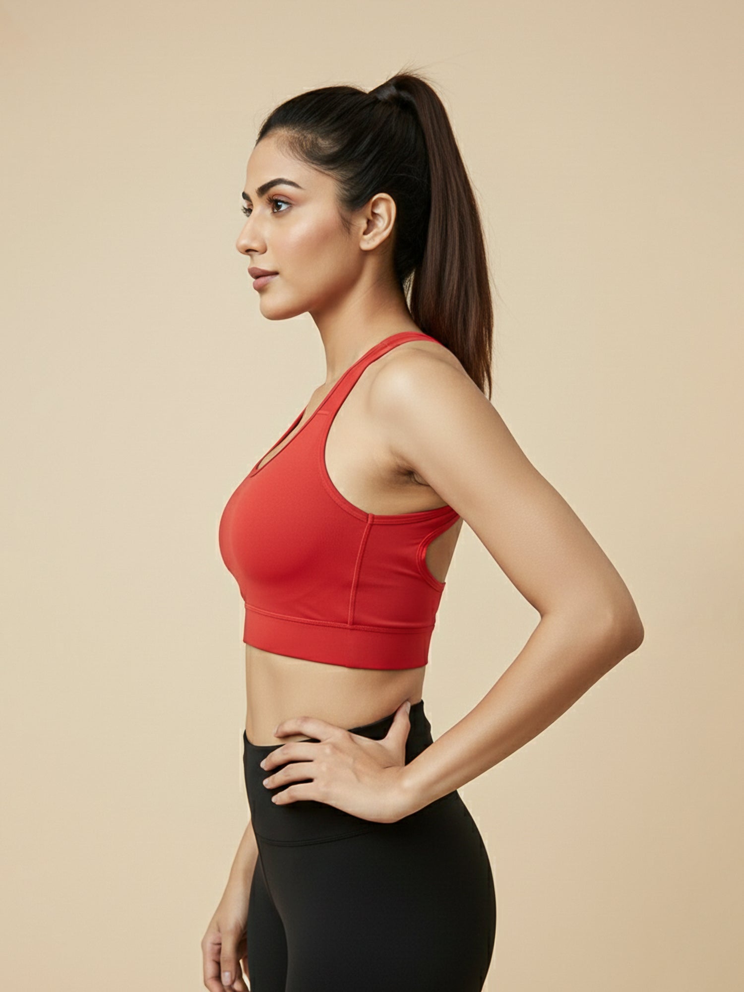 This red multi-strap back sports bra is built for confident movement and everyday versatility. Designed with medium support and removable padding, it blends structure and softness perfectly. The multi-strap racerback design not only enhances support but also adds a bold edge to your workout look. Whether you’re training, stretching, or lounging, this bra keeps you secure and stylish.