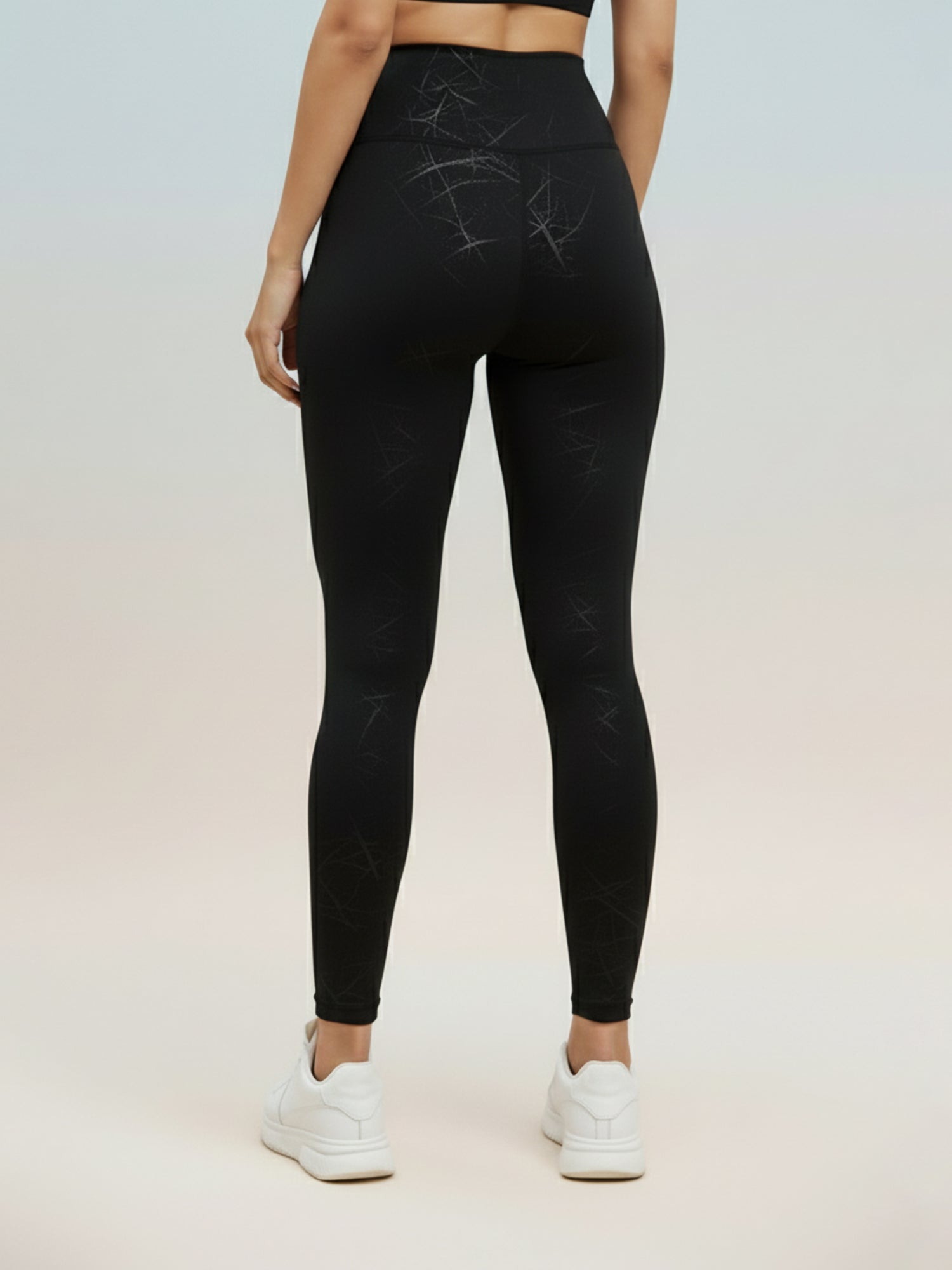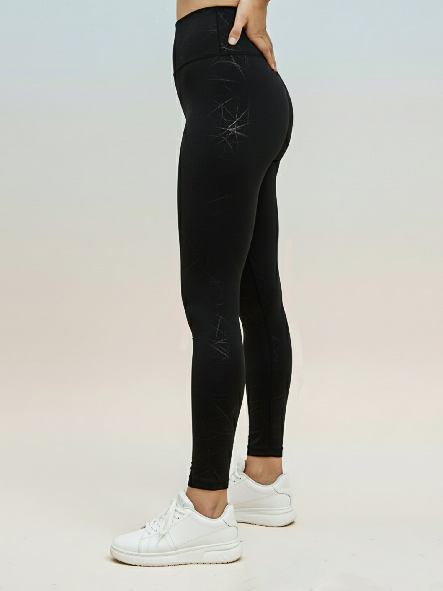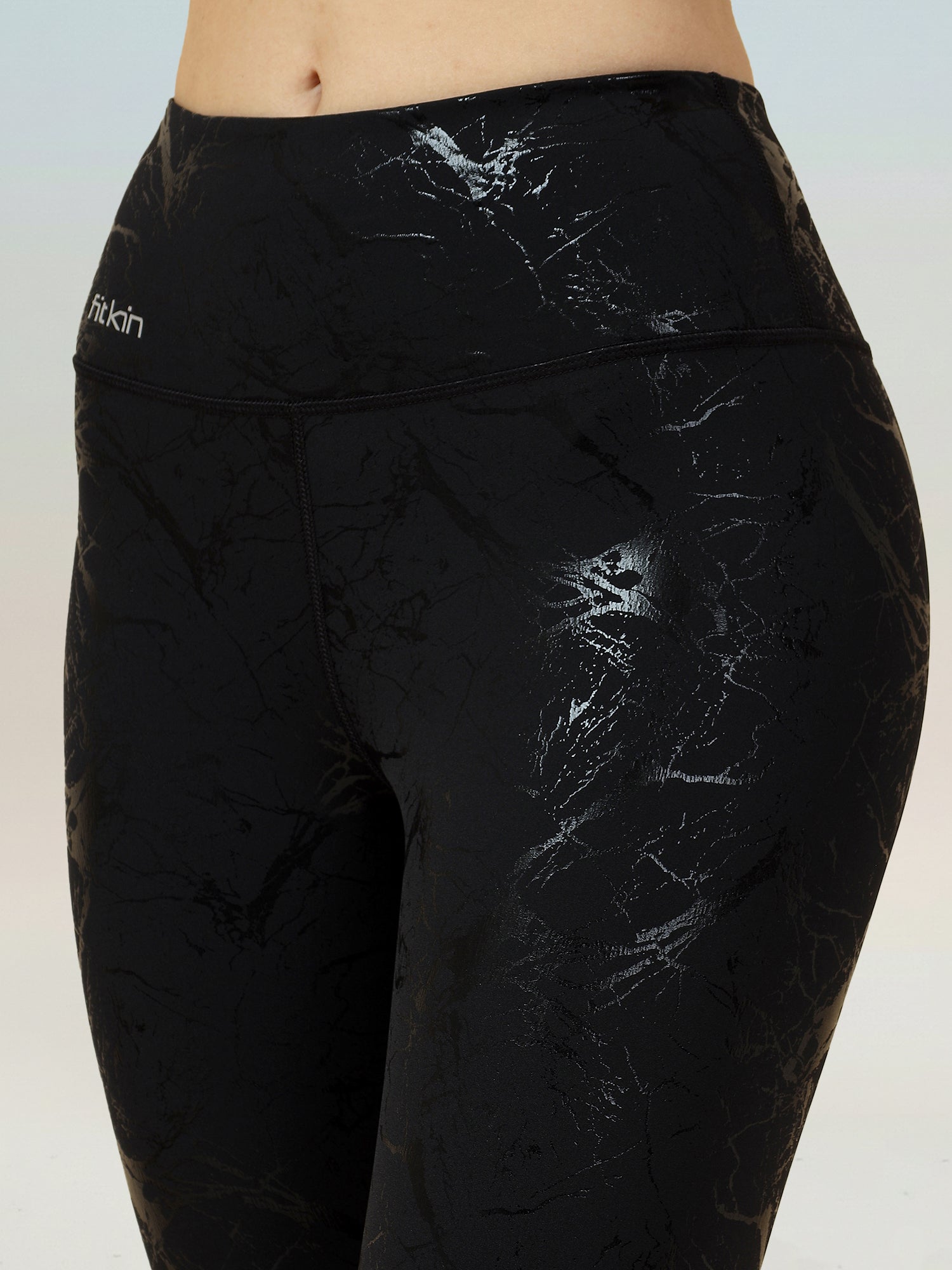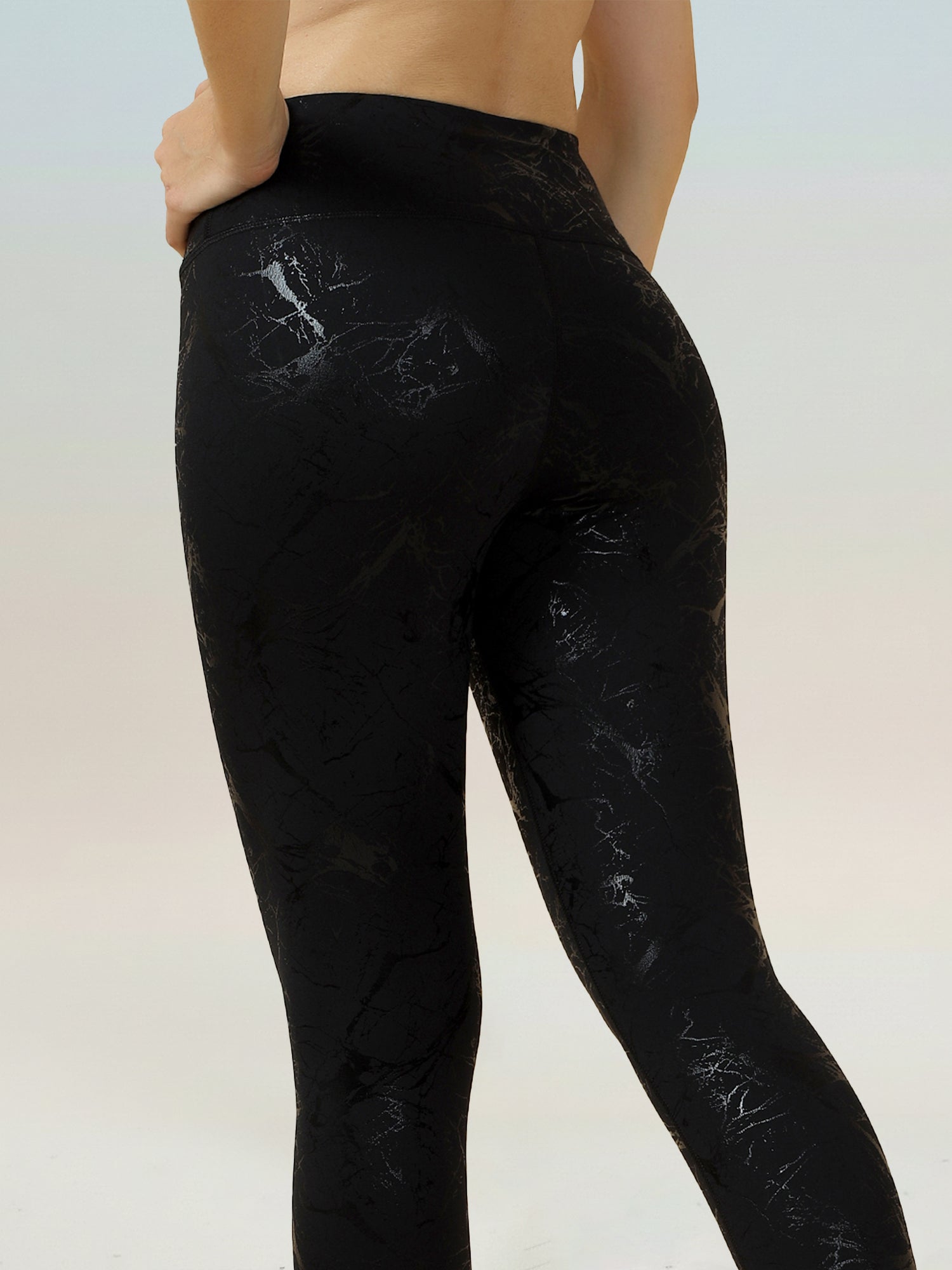 Make a statement in subtle shine—your favorite leggings reimagined with foil-marble veins that shimmer as you move. Crafted from a high-performance four-way stretch fabric with a high waistband for core support, these leggings deliver both fashion-forward appeal and comfort.