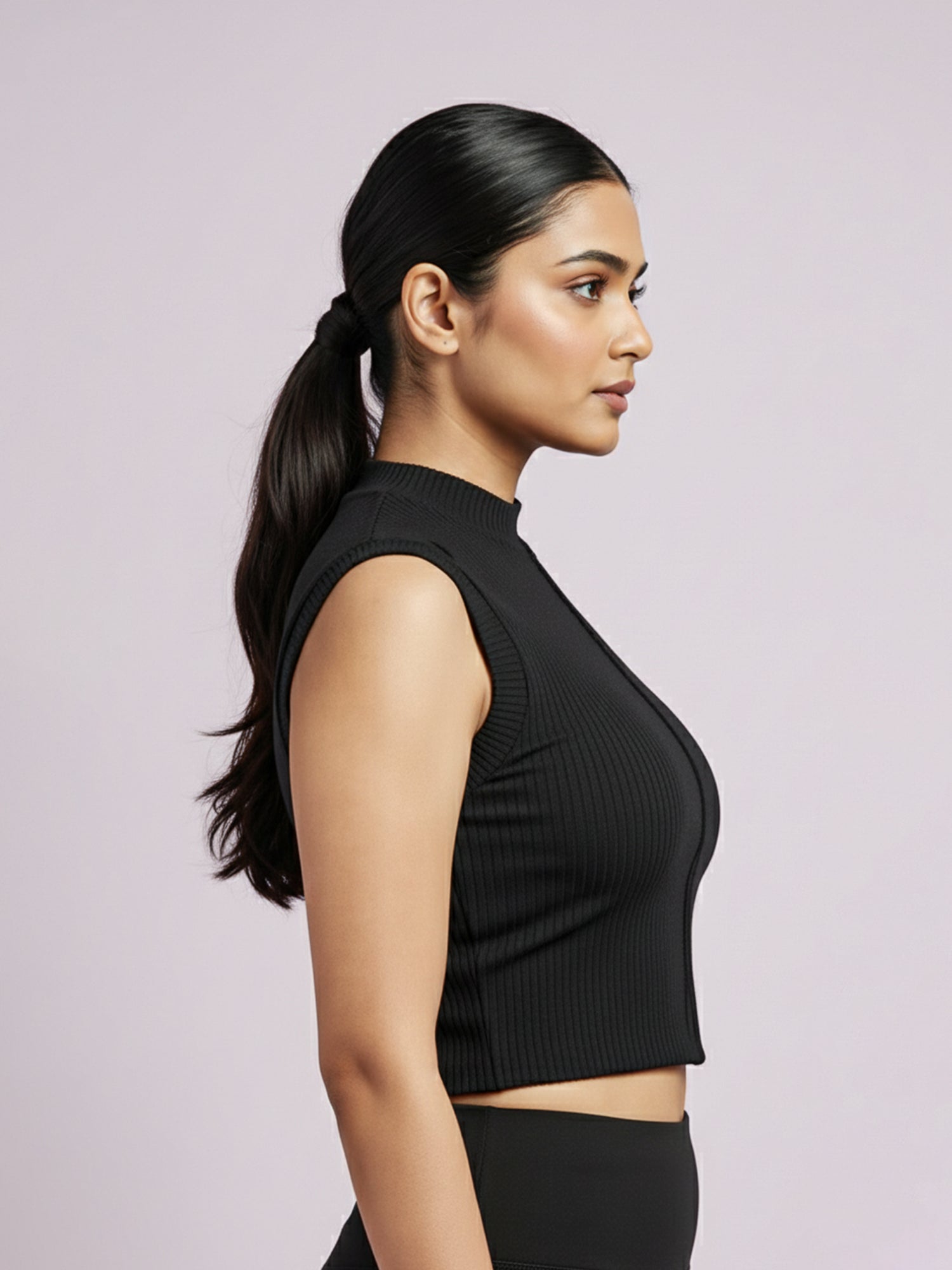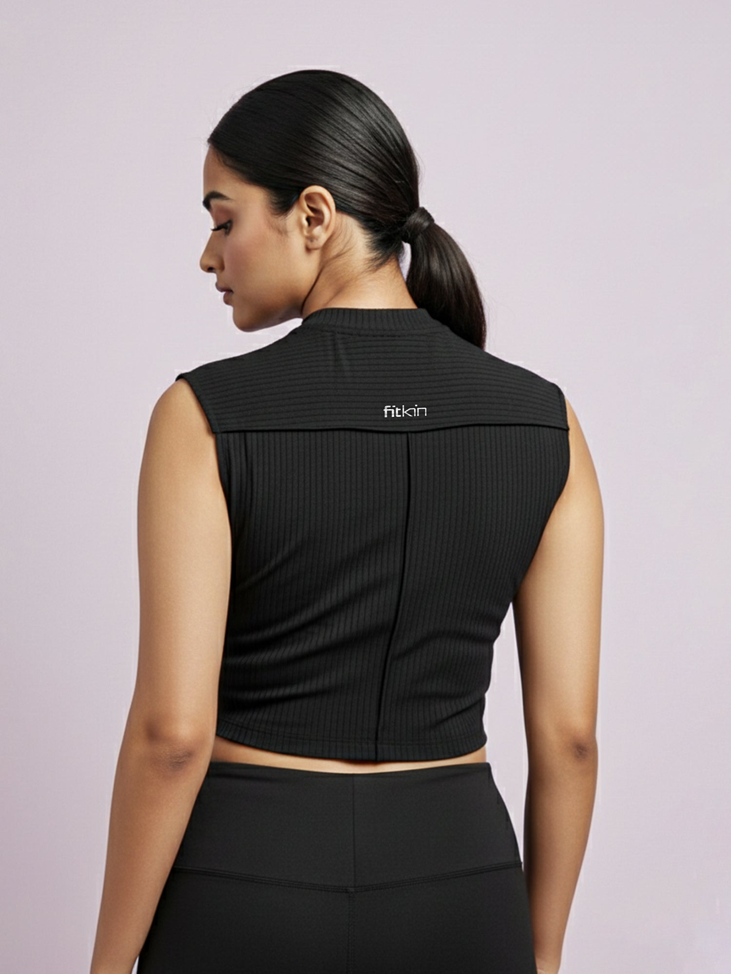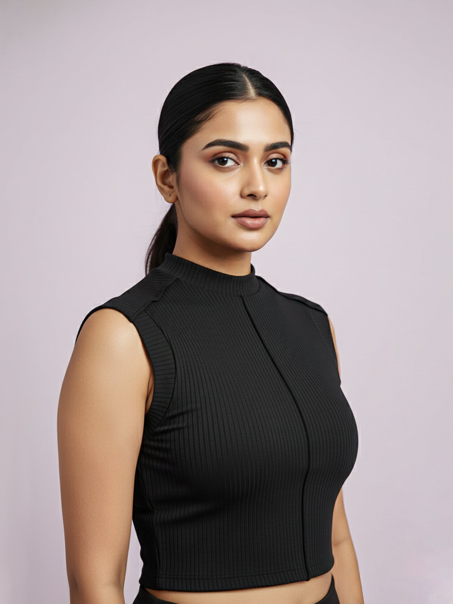 Keep it cute and comfy in our Black Ribbed Sleeveless Crop Top! Made with soft ribbed fabric that hugs you just right, this crop top is your go-to for that effortlessly chic look. The front seam detail adds a touch of edge, while the cropped fit keeps it trendy and versatile — perfect for brunches, workouts, or chilling with your besties.
