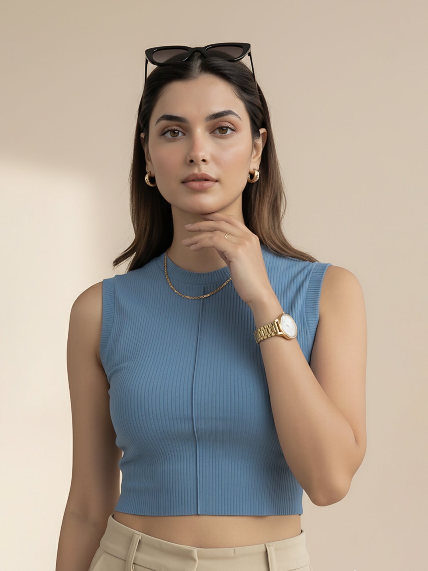 Keep it cute and comfy in our Blue Ribbed Sleeveless Crop Top! Made with soft ribbed fabric that hugs you just right, this crop top is your go-to for that effortlessly chic look. The front seam detail adds a touch of edge, while the cropped fit keeps it trendy and versatile — perfect for brunches, workouts, or chilling with your besties.