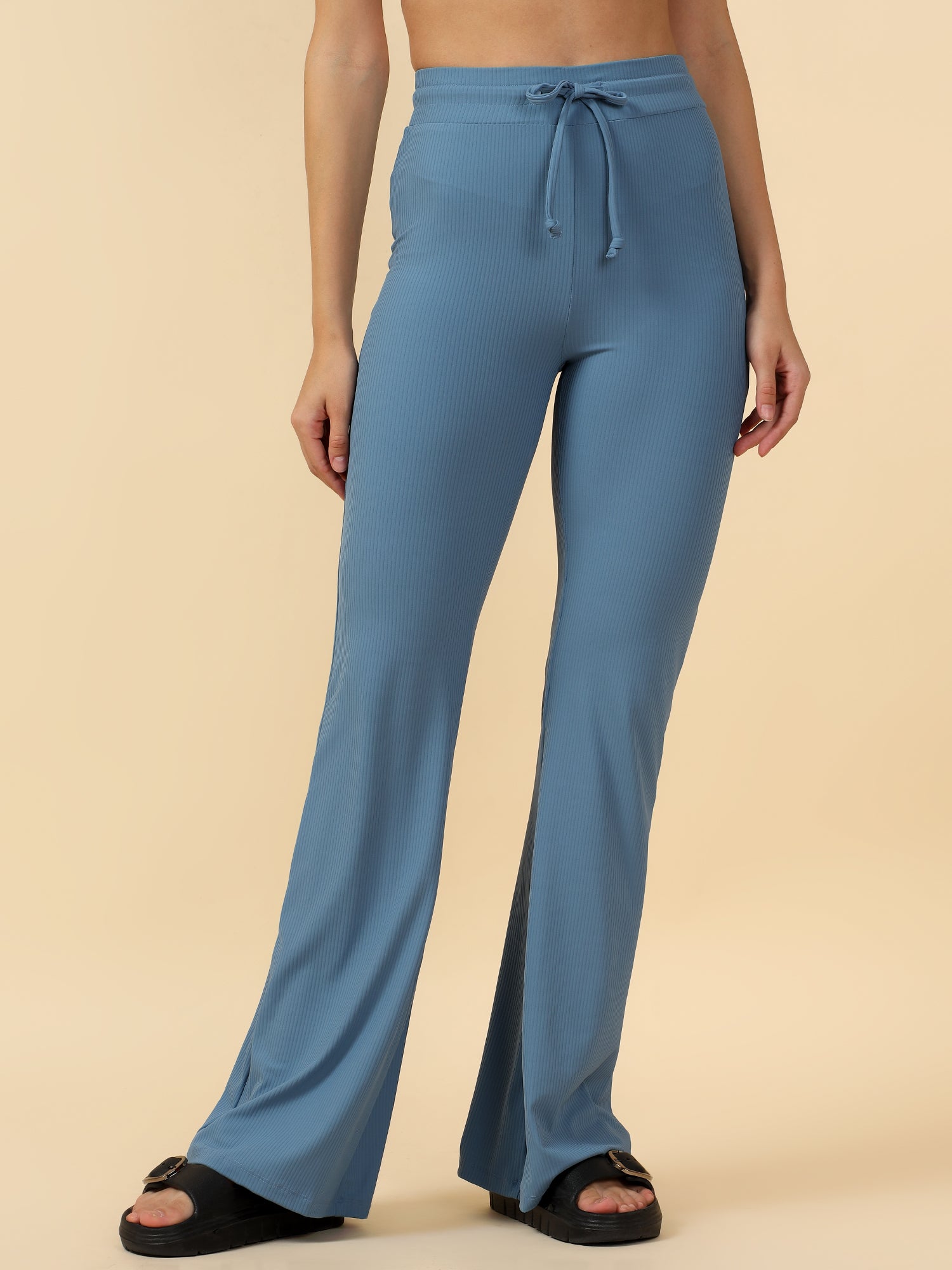 WhatsApp Blue Ribbed Bootcut Pants with Adjustable Waist Tie – Fitkin website