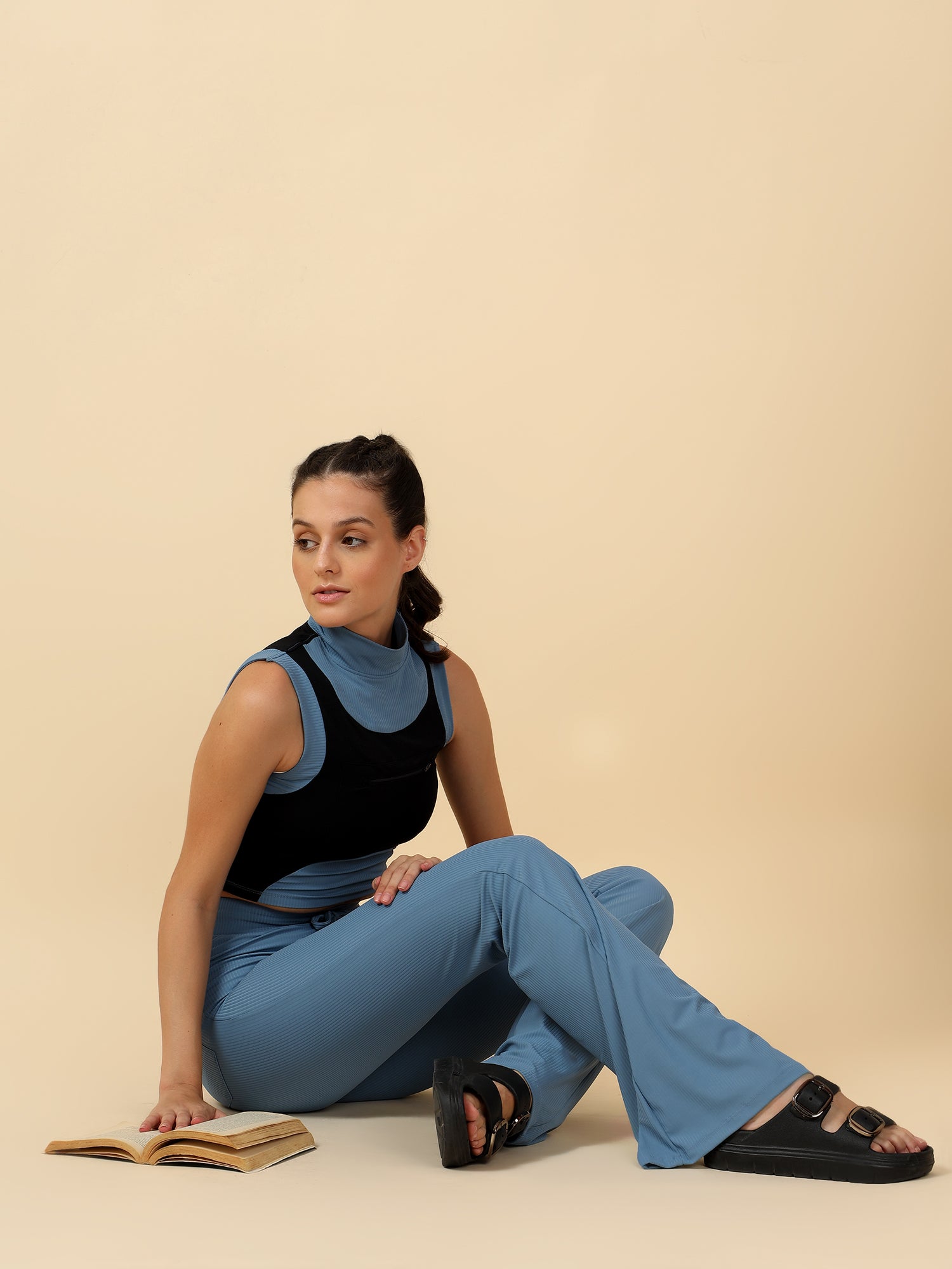 • 1. Blue ribbed bootcut trackpant
