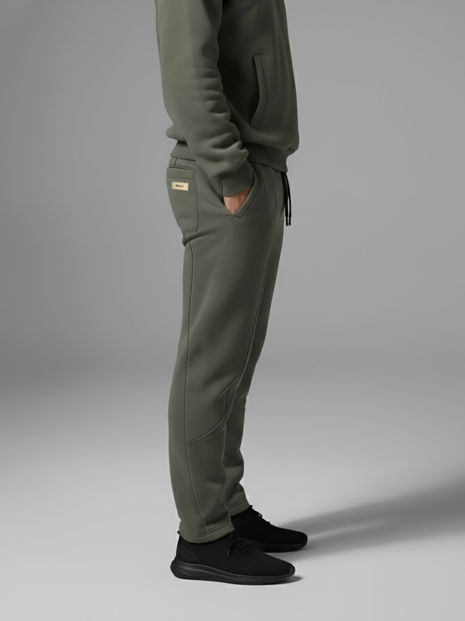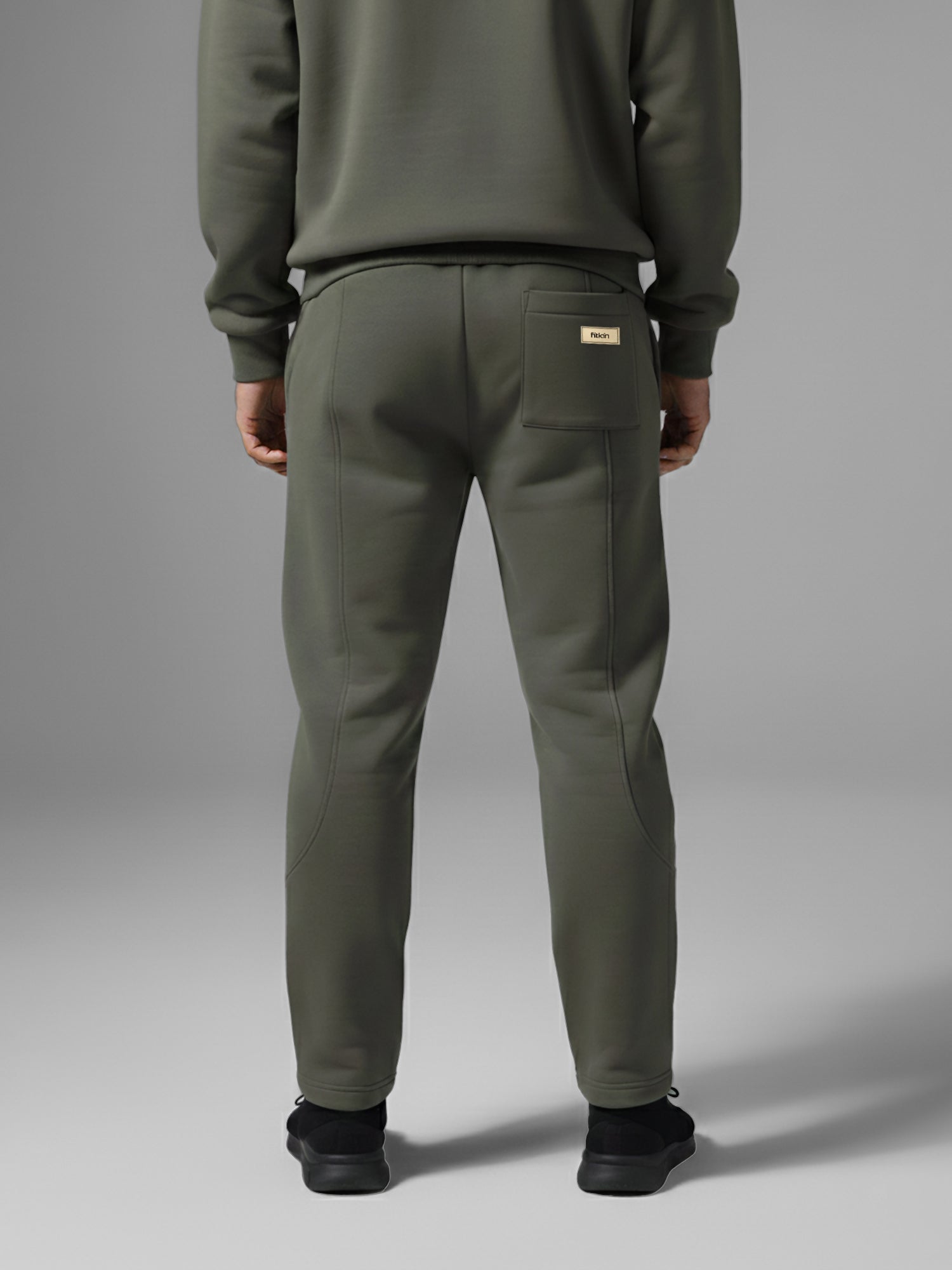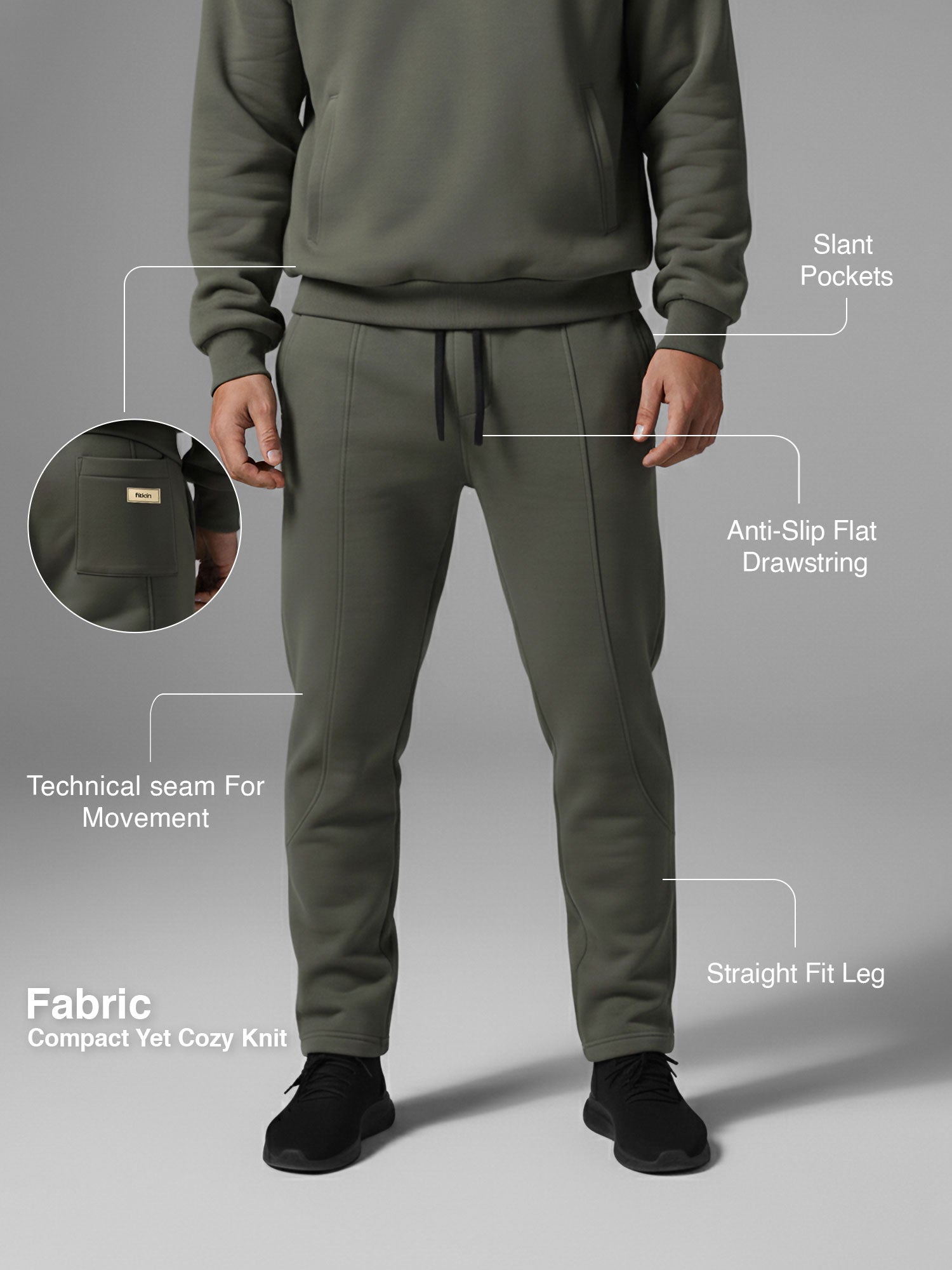 Men Olive Mid-Rise Straight Fit Fleece Track Pants