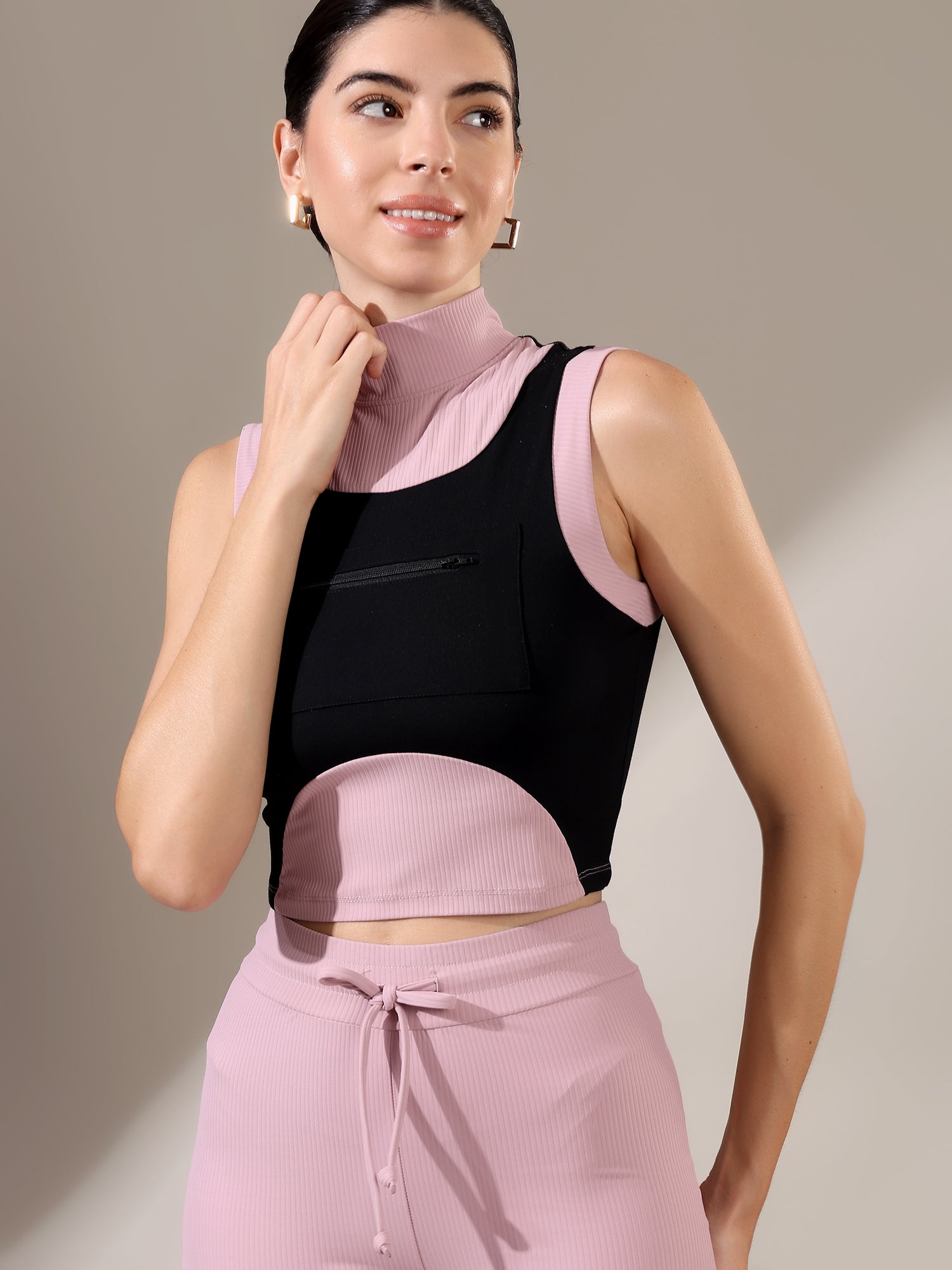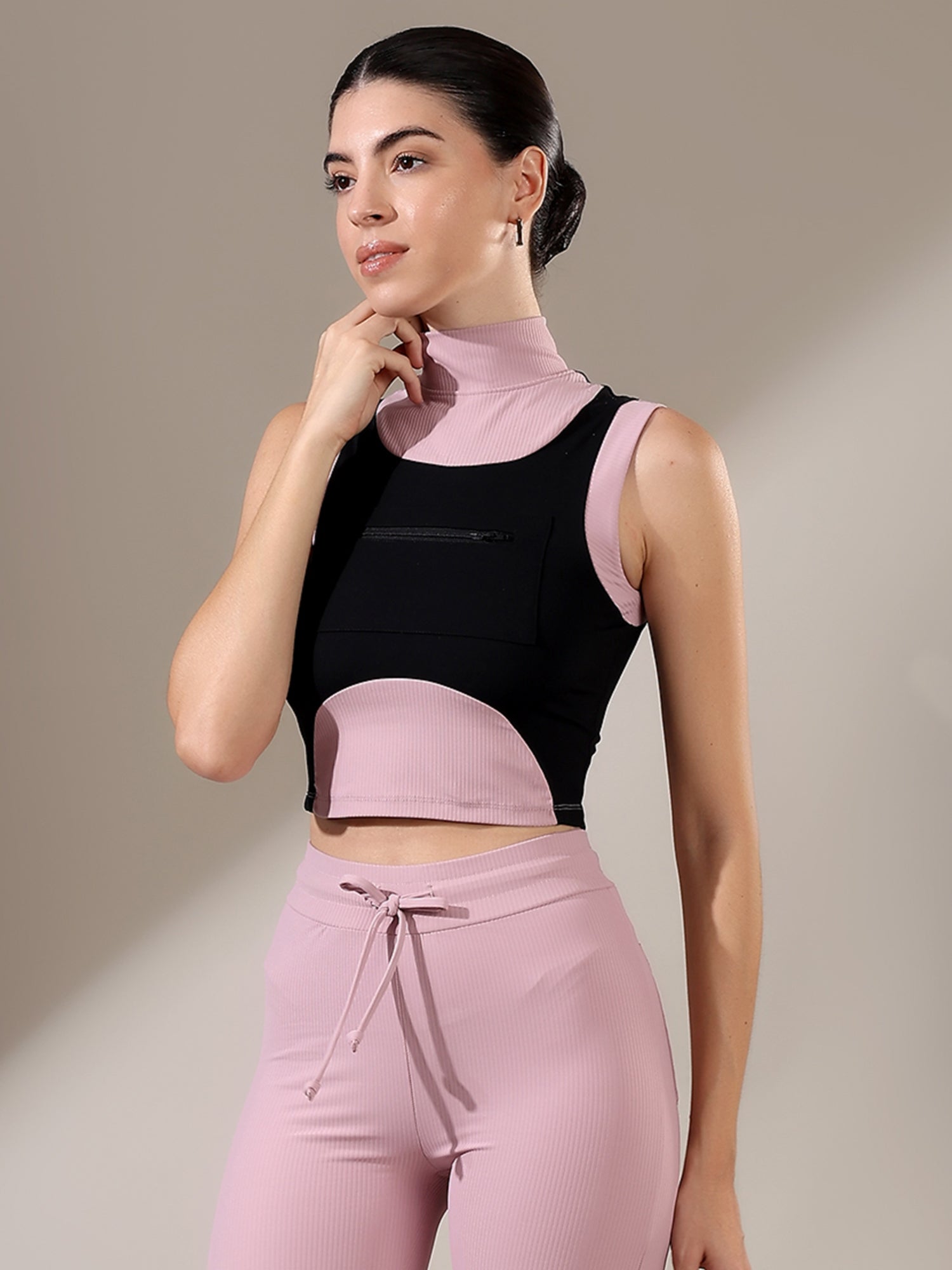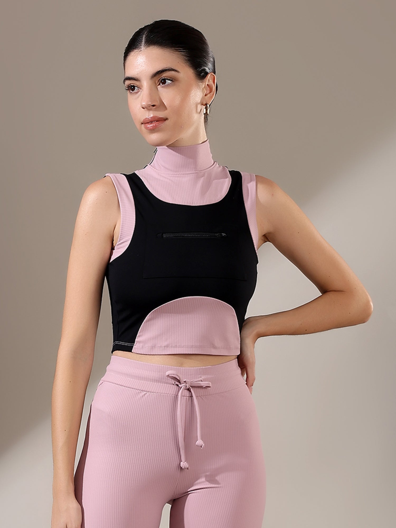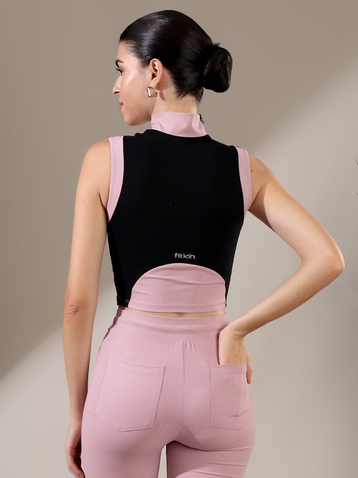 The Fitkin Beige Colorblock Ribbed Top blends bold style with everyday comfort, featuring ribbed texture and breathable stretch for all-day ease.