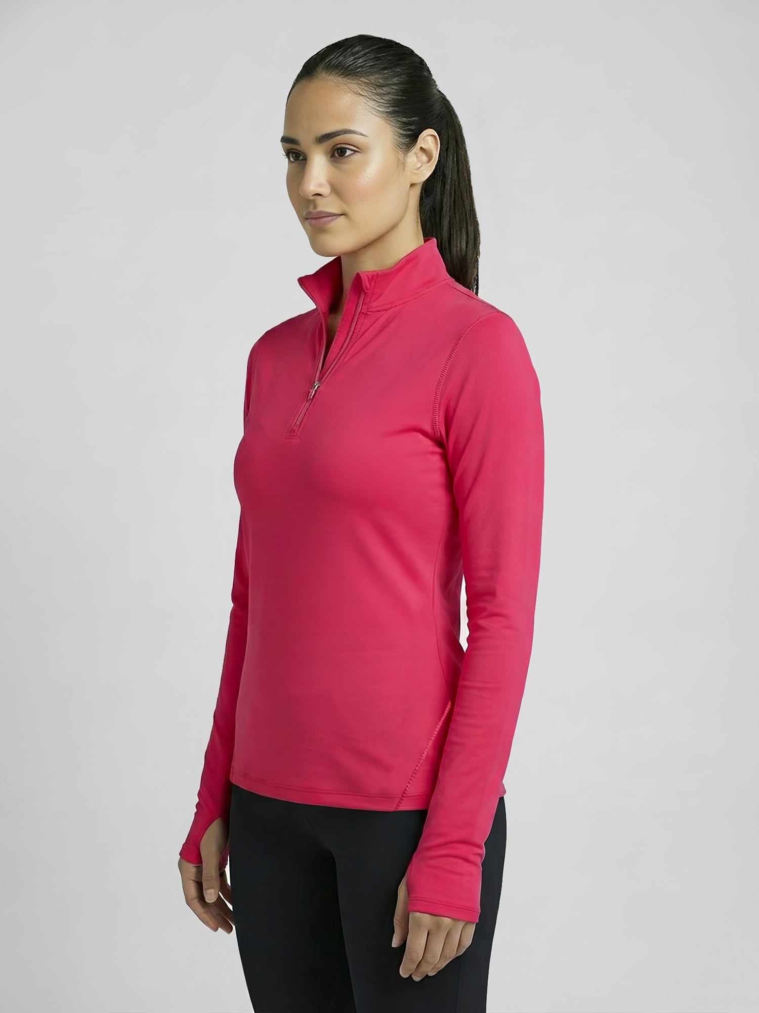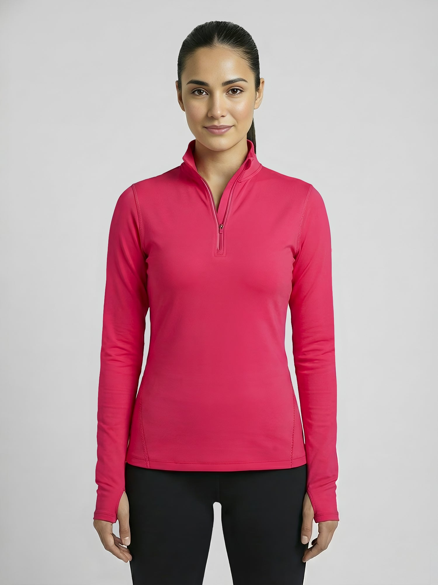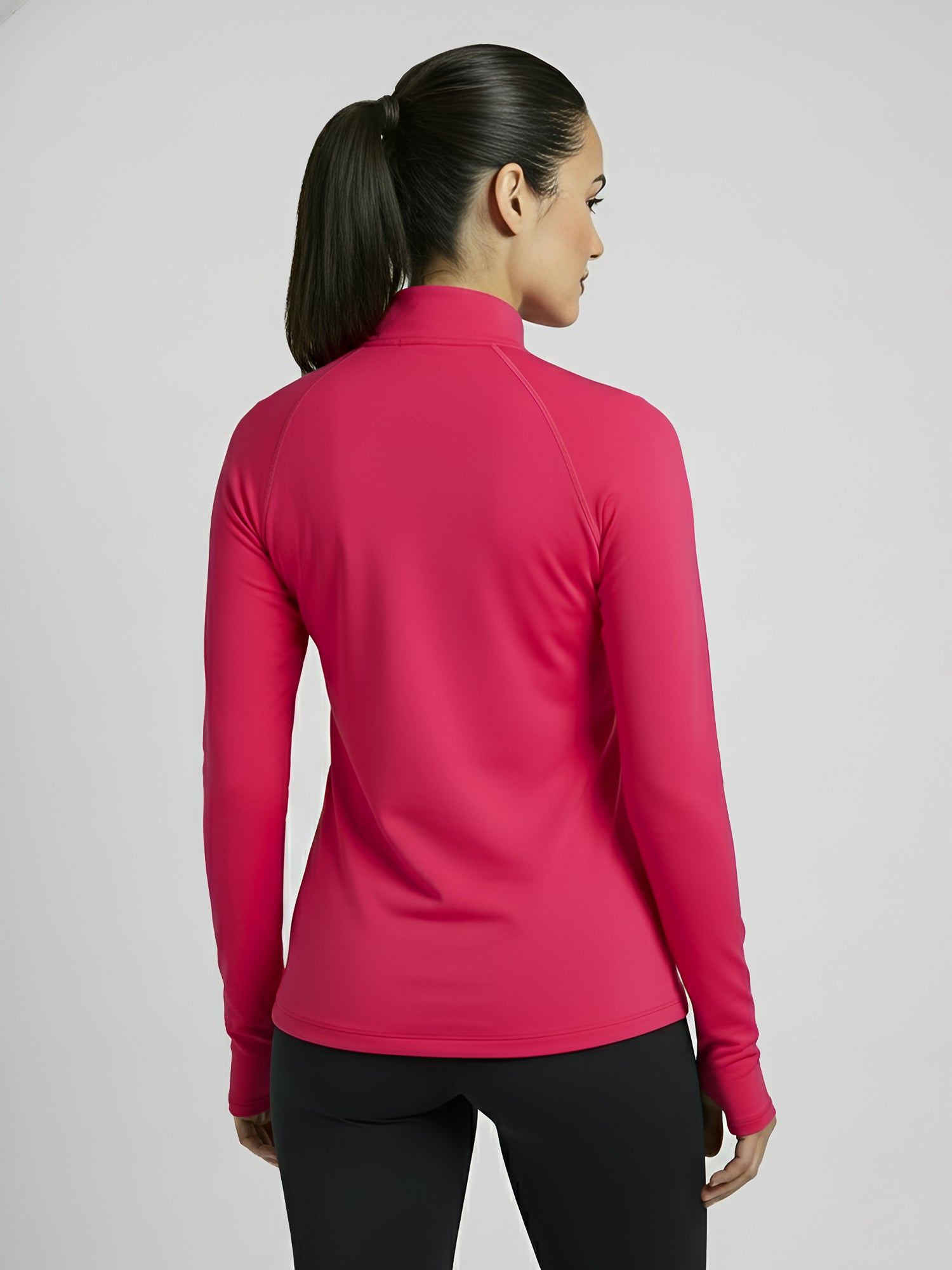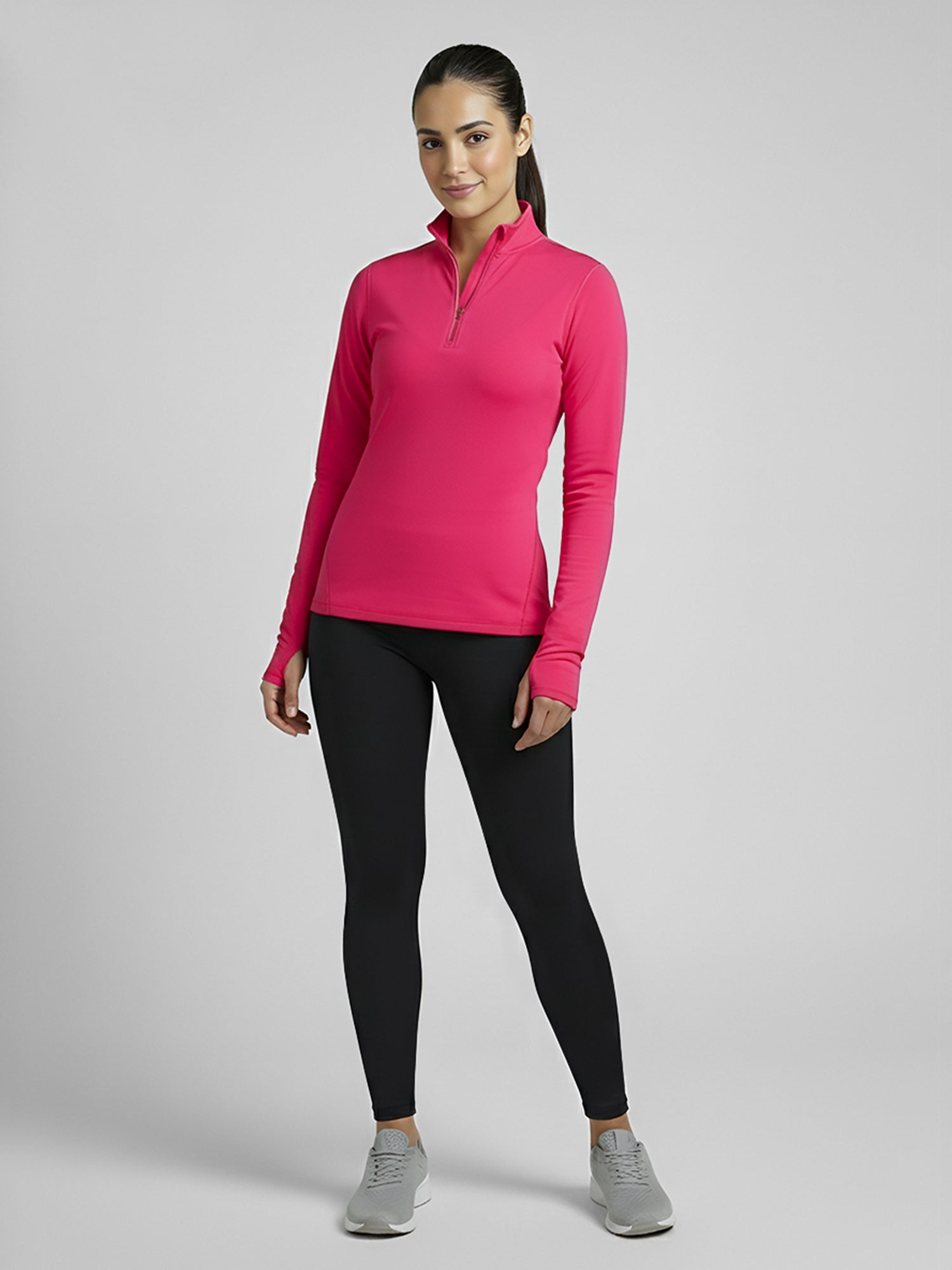 Women's Pink Zipper Full Sleeves Base Layer T-shirt